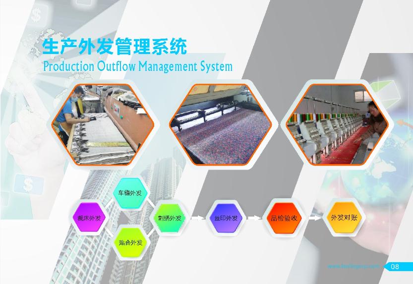 倉(cāng)庫(kù)、生產(chǎn)工藝、生產(chǎn)外發(fā)、貨品銷(xiāo)售、財(cái)務(wù)應(yīng)收應(yīng)付。